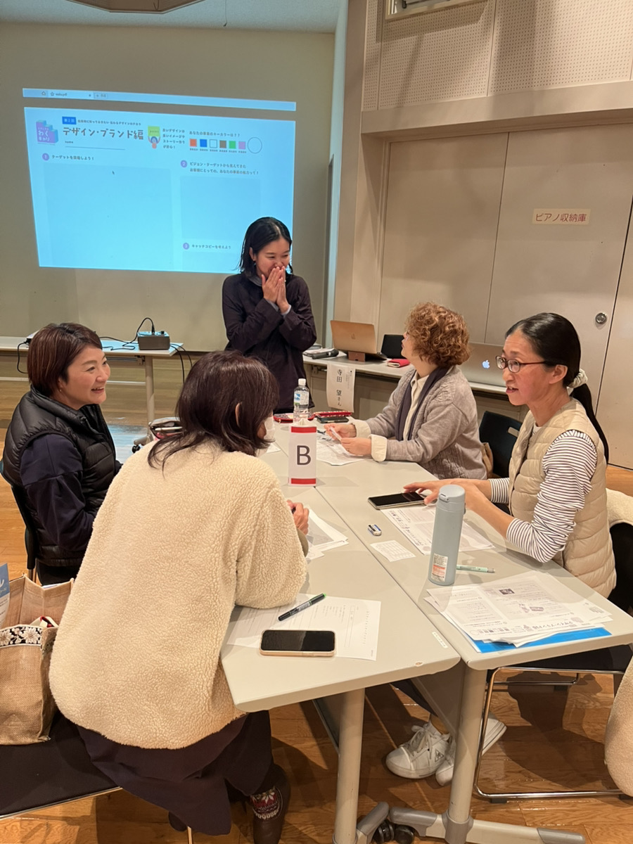ユズコさんが制作されたロゴやリーフレットを見せていただきながら、デザインに込められた想いや背景を伺うと、参加者の皆さんも「コンセプトの大切さ」を改めて感じているようでした。