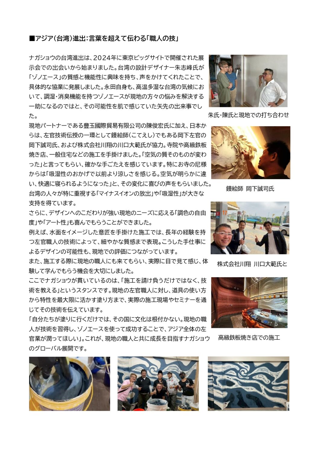 株式会社ナガショウ様が、現代漆喰「ZONO A® (ゾノエース)」で台湾進出したことについてのプレスリリースを配信しまし