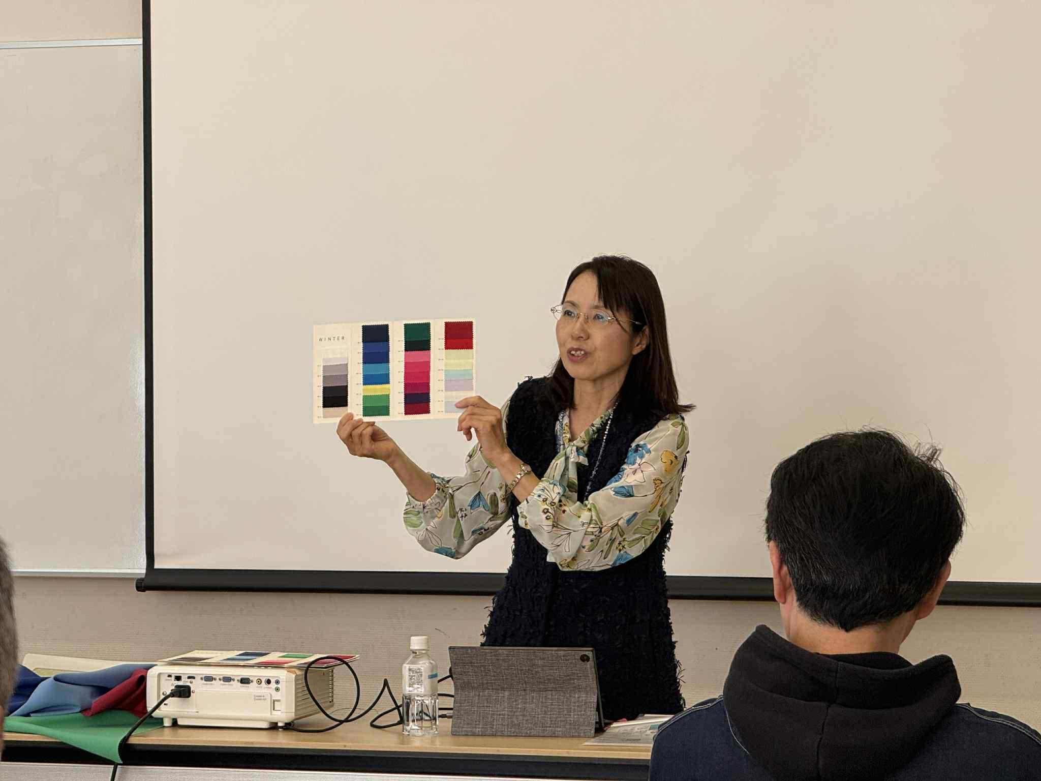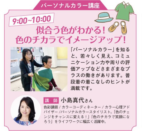 2部制で、前半は、カラーコーディネーターの小島真代さんを講師にお迎えし、色の力を借りたイメージアップ術を学びました。
