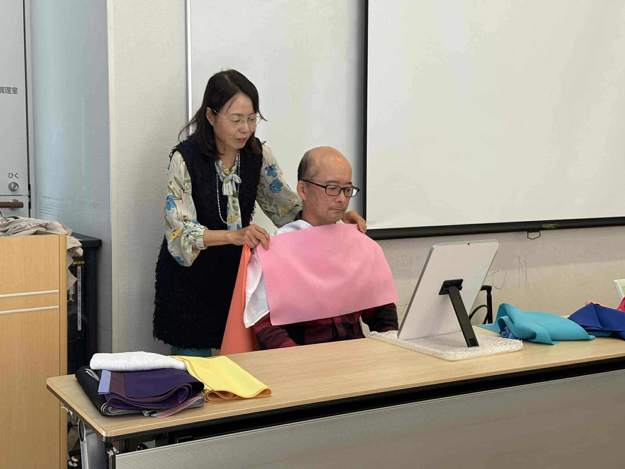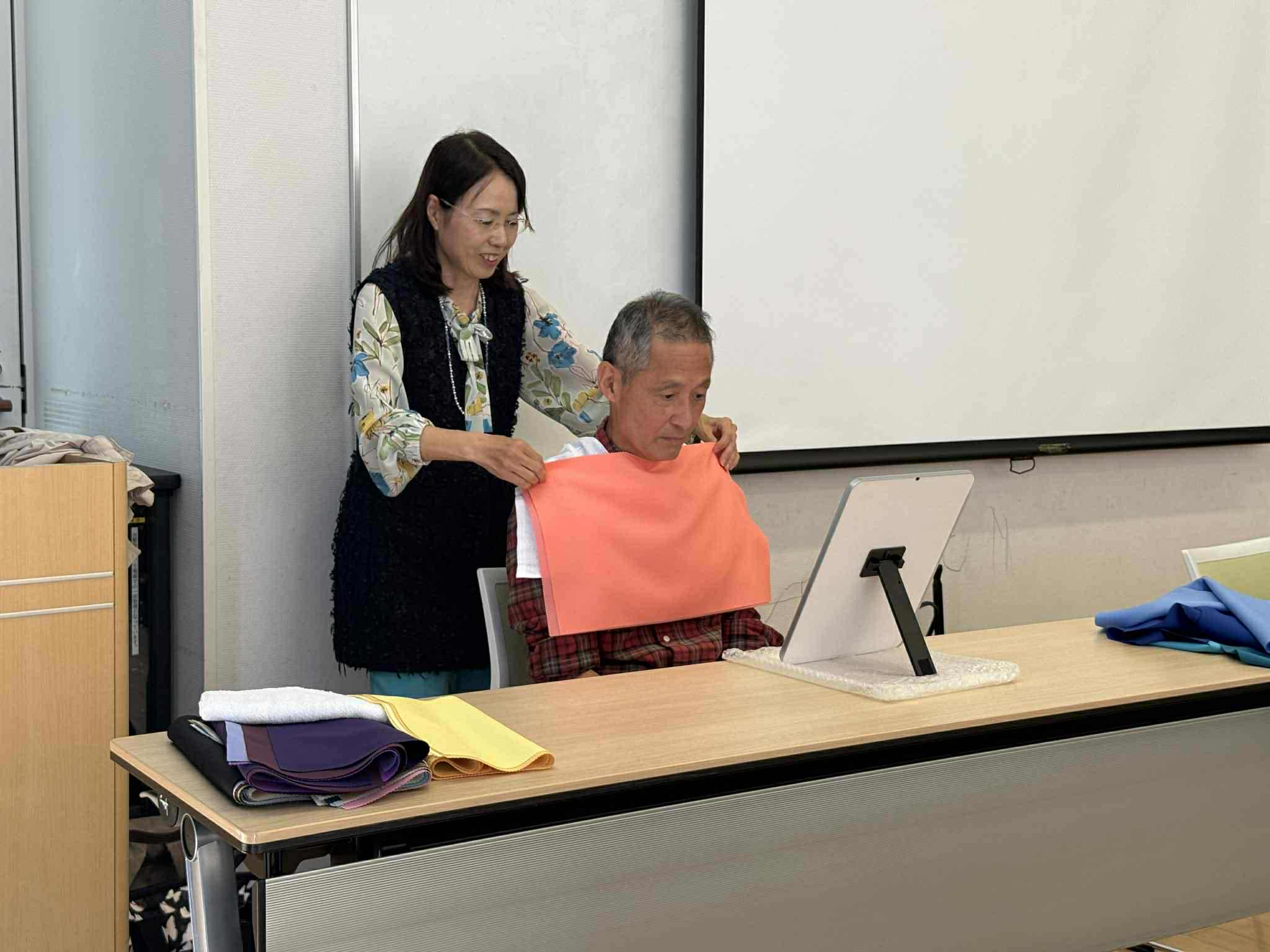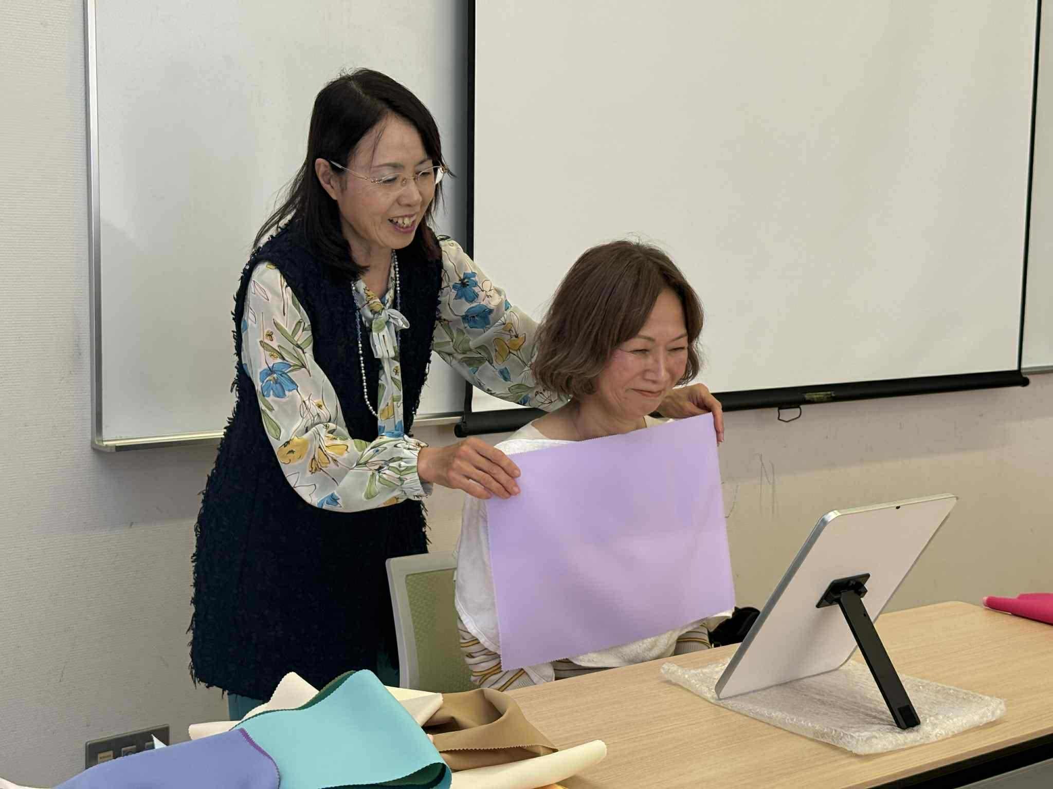 今年は、見学に来られていた奥様方にもパーソナルカラー診断を体験していただきました。